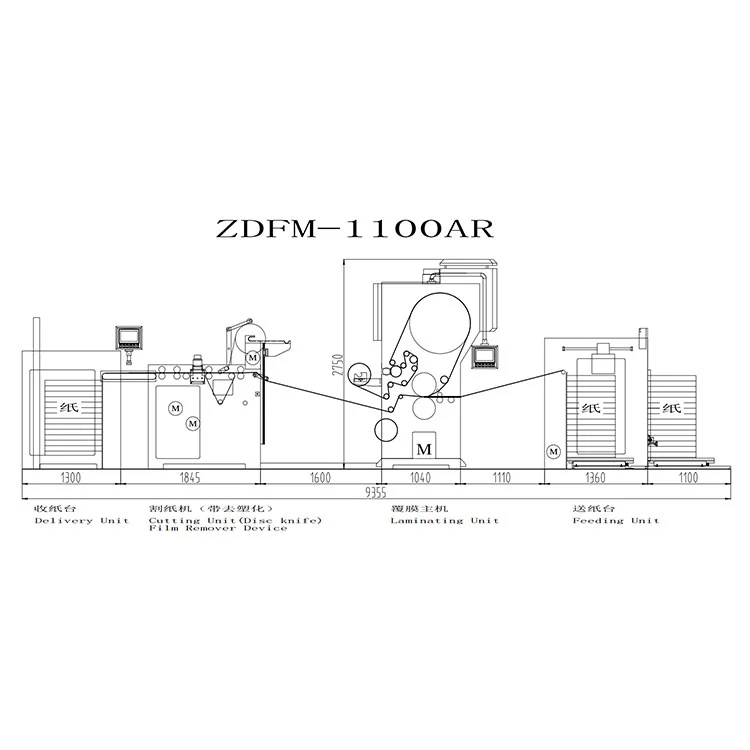 Erdvės planavimas: Bendras automatinio plėvelės nuėmimo laminavimo mašinos ilgis yra apie 9,4 metro, todėl reikia rezervuoti papildomą vietą plėvelės perdirbimo ritinėlių saugojimui ir pakeitimui. Apvijos pusėje rekomenduojama rezervuoti ne mažiau kaip 2 metrus darbinio kanalo.