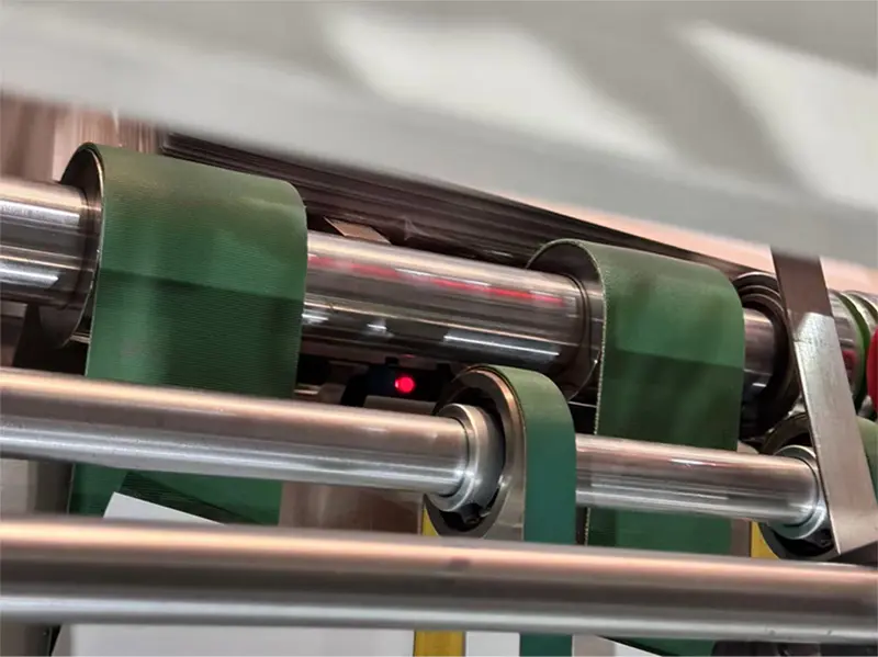Indukcinė elektrinė akis, pajutusi popieriaus ilgį, pasikeitus popieriaus ilgiui, diržas įsibėgės, o paėmimo mašinos pertvara apvirs ir išmuš popierių.